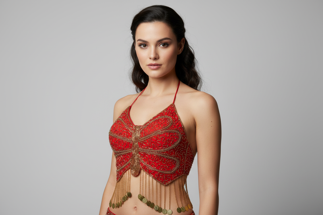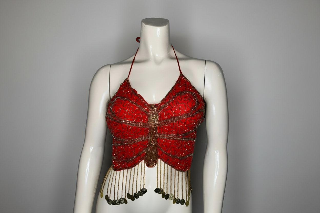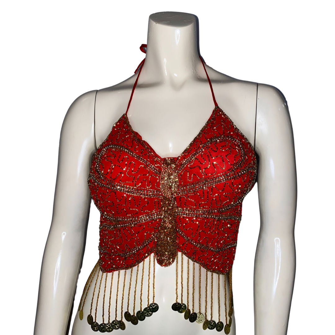 Red Beaded Butterfly Top