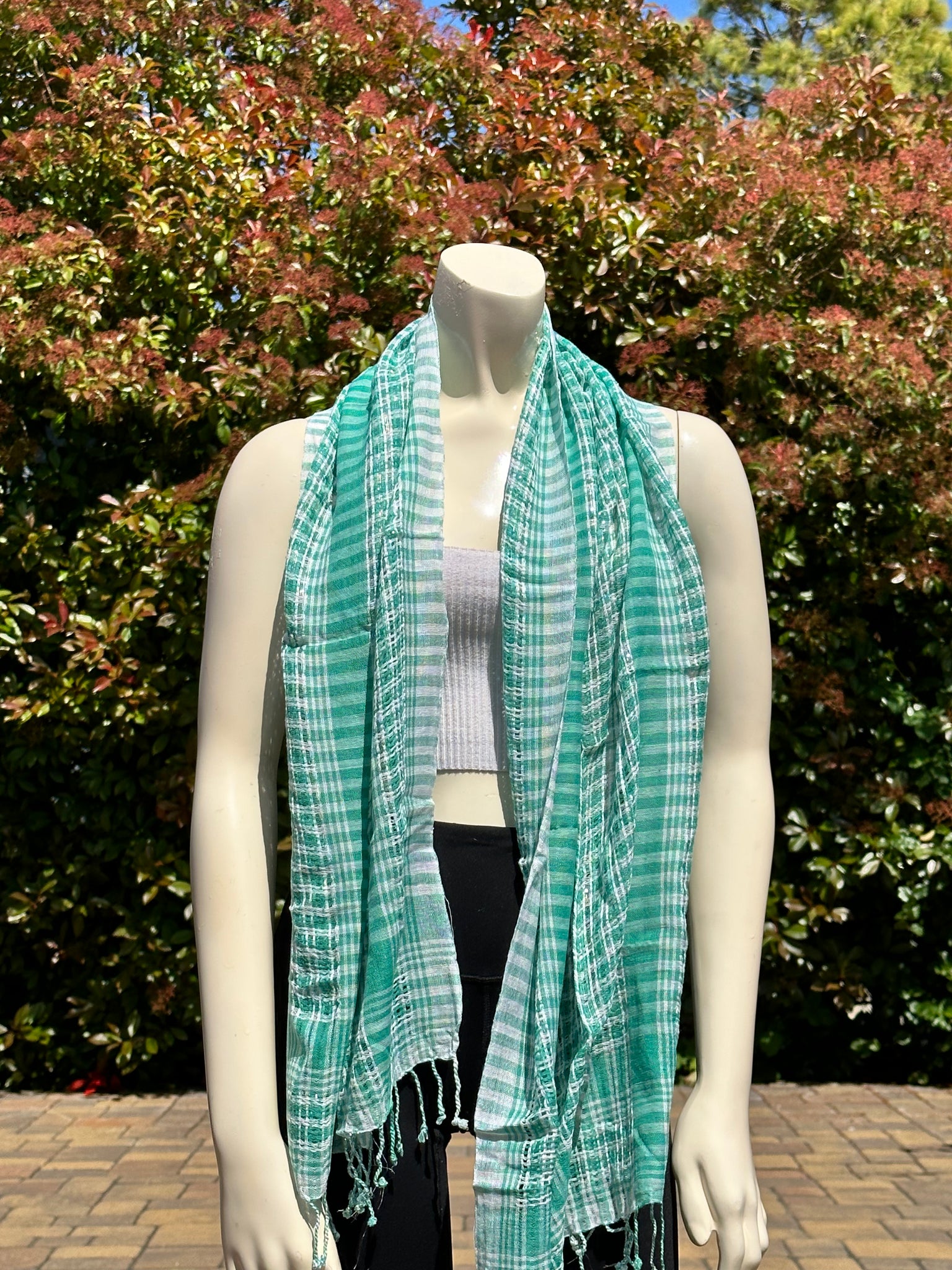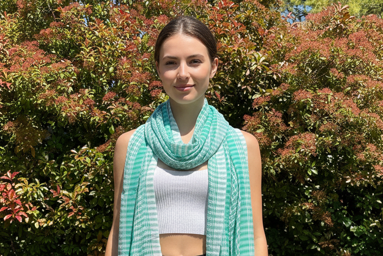 A lightweight cotton scarf designed for everyday layering and effortless styling. Soft, breathable, and easy to wear, this piece can be styled multiple ways — wrapped around the neck, draped over the shoulders, tied as a hip scarf, or worn as a lightweight swim cover-up.
