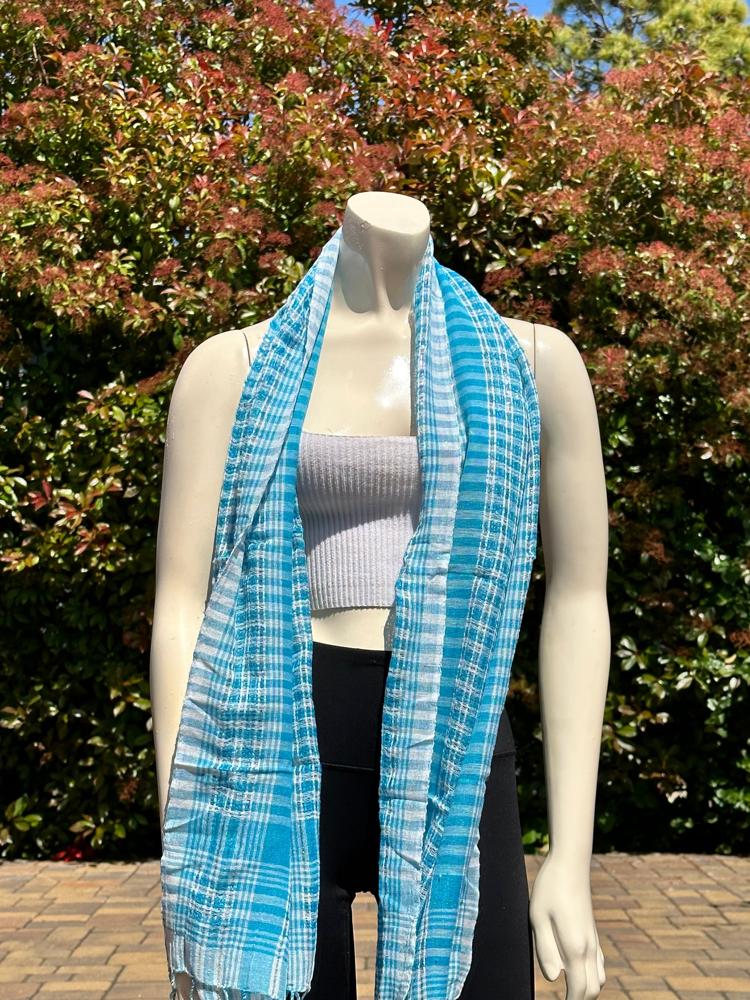 A lightweight cotton scarf designed for everyday layering and effortless styling. Soft, breathable, and easy to wear, this piece can be styled multiple ways — wrapped around the neck, draped over the shoulders, tied as a hip scarf, or worn as a lightweight swim cover-up.